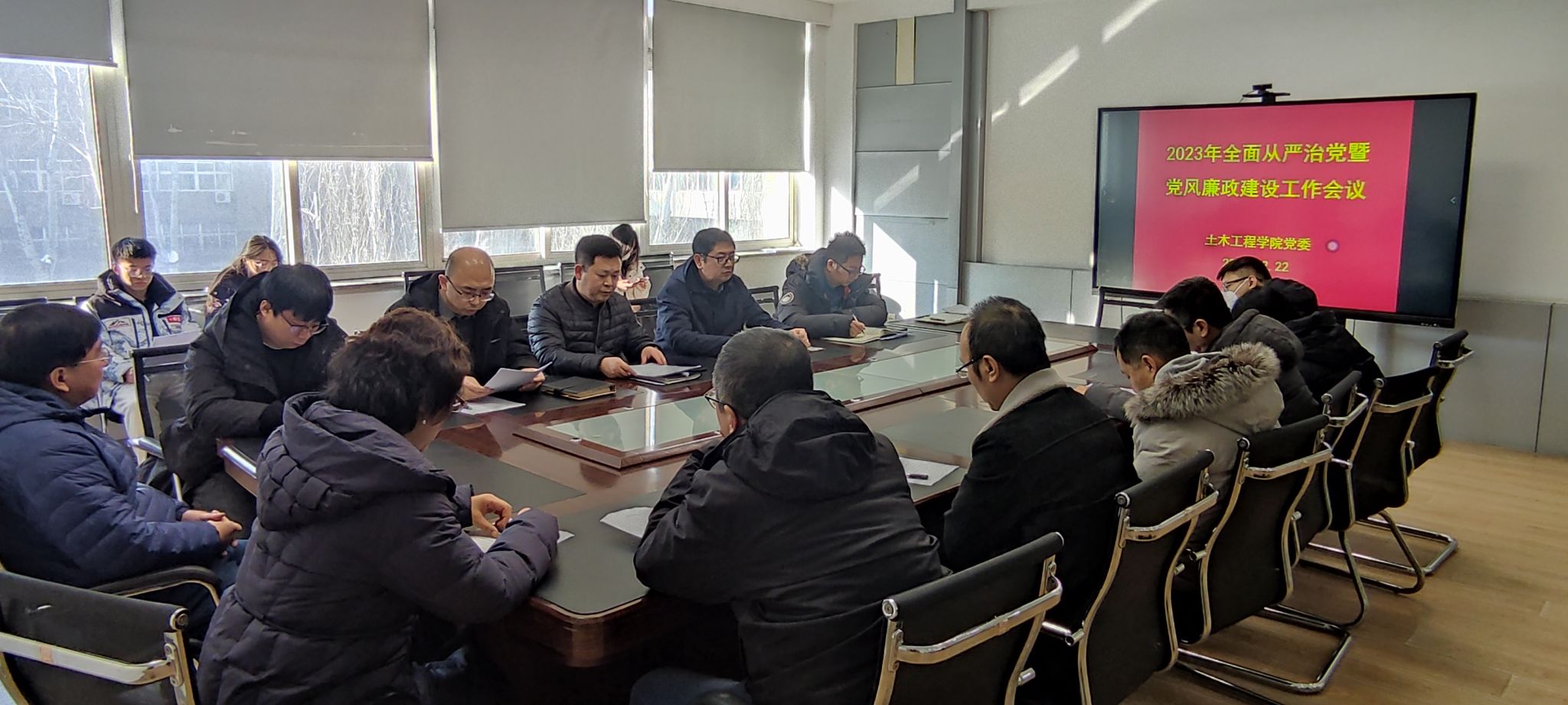 12月22日,2003太阳集团党委在教学楼丁2-205会议室召开2023年全面从严治党暨党风廉政建设工作会议,2003太阳集团党委委员、班子成员及全体党支部书记、组织员参加会议。会议以习近平新时代中国特色社会主义思想为指导,认真总结2003太阳集团党委2023年度落实全面从严治党主体责任、深入推进党风廉政建设工作情况,传达上级宣传思想文化工作会议精神,并对学院全面从严治党、党风廉政建设和意识形态工作提出工作要求。