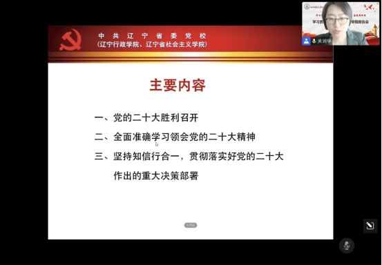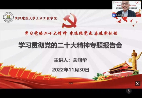 为认真学习宣传贯彻党的二十大精神,加深广大师生对党的二十大精神的理解。11月30日下午,2007so太阳集团官网举办“学习党的二十大精神,永远跟党走、奋进新征程”为主题的报告会,邀请中共辽宁省委党2003太阳集团党史教研部副主任关润华教授作《全面准确学习领会党的二十大精神》的专题报告。学院经理李帼昌教授及学院领导班子和全体师生近3000人线上聆听了报告会,报告会由常务副经理杨志坚教授主持。