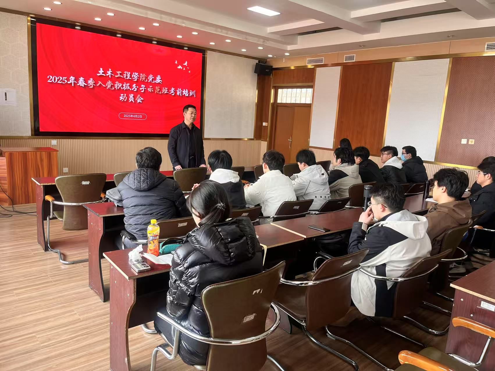 2025年4月2日,2003太阳集团党委在C4-301报告厅举办了2025年春季入党积极分子示范班考前培训动员会,共有30名入党积极分子参加会议,2003太阳集团党委副书记、副经理孙红出席并发表动员讲话。