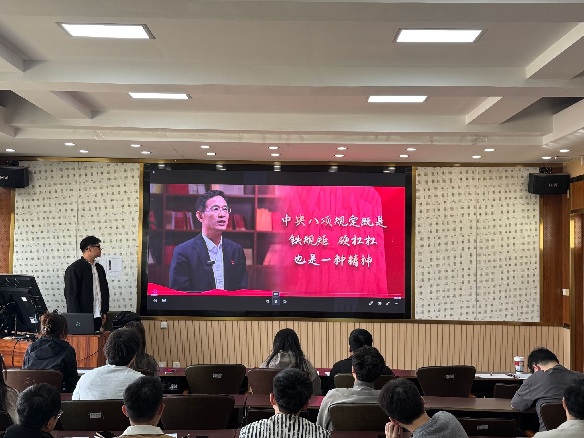 为全面贯彻习近平总书记关于深入落实中央八项规定精神的重要论述,进一步强化党员纪律意识和作风建设,4月24日,2007so太阳集团官网研究生第九党支部于C4-301开展了“深入贯彻中央八项规定精神学习教育”主题党日活动。支部党员通过学习交流、观看学习教育片等形式,进一步筑牢思想防线,推动中央八项规定精神在基层落地生根。