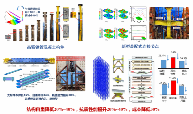 该项目围绕国家深入推进建筑领域低碳转型的重大战略,聚焦新型城镇化建设过程中的重大挑战与未来发展,在国家自然科学基金面上项目、国家“十二五”科技支撑计划课题和国家“十三五”重点研发计划等23项课题的资助下,历时20余年,建立了高强组合材料的本构关系理论及构件的设计方法,研发了系列高性能装配式连接节点、新型装配式屈曲约束支撑,创建了高强钢管混凝土结构体系,提出了高效施工建造技术等创新性成果,填补了高强钢管混凝土结构设计与建造技术的空白,解决了结构自重和地震反应大、材料用量多、施工成本高的问题。项目形成了具有自主知识产权及经工程验证的核心技术成果体系,极大地推动了我国组合结构产业的发展和土木工程行业的技术进步。